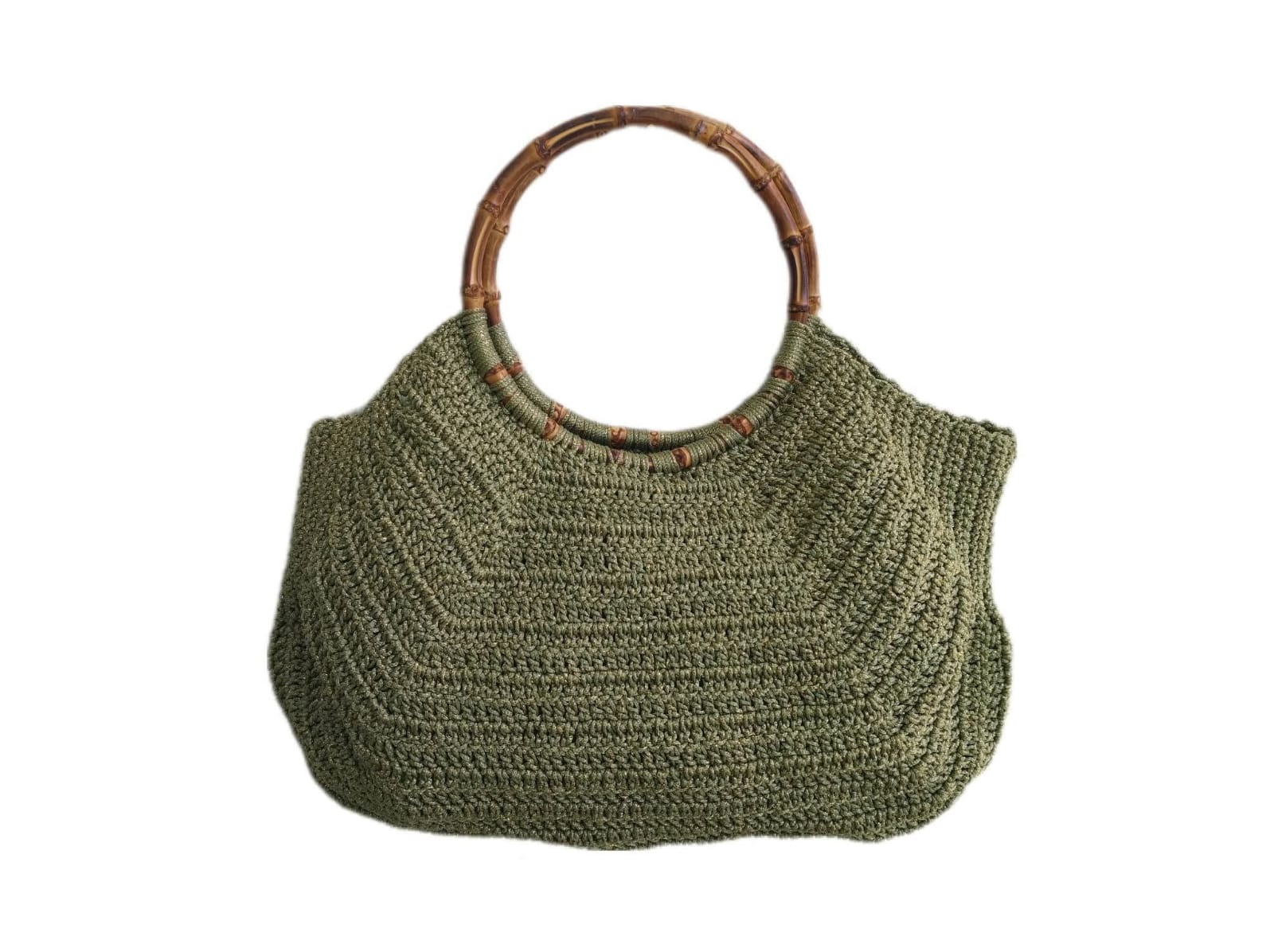 La lavorazione accurata del cordino crea una struttura solida ma morbida, ideale per l’uso quotidiano. Il manico in bamboo, leggero e resistente, dona carattere alla borsa e la rende comoda da portare a mano, valorizzando outfit casual, estivi e boho-chic.