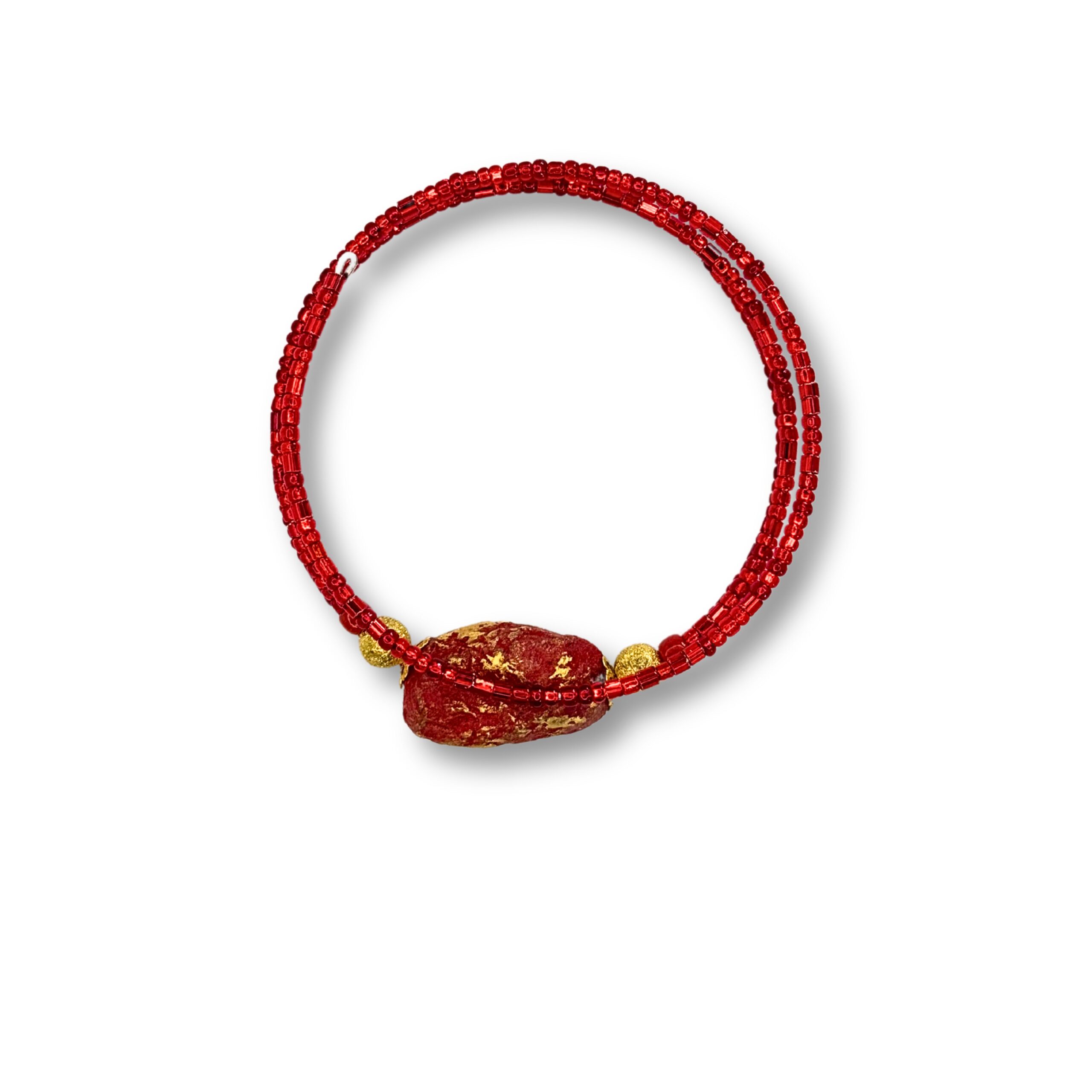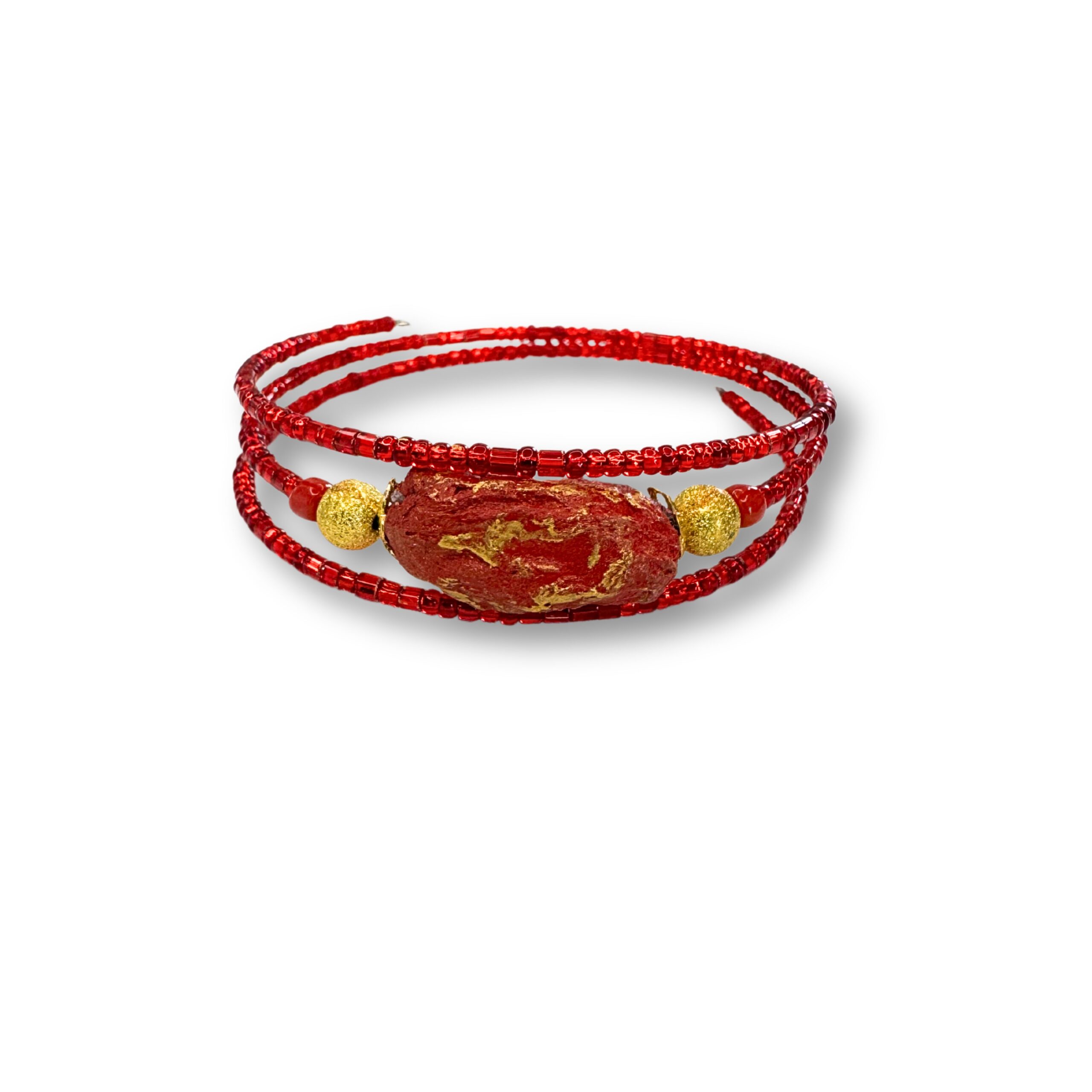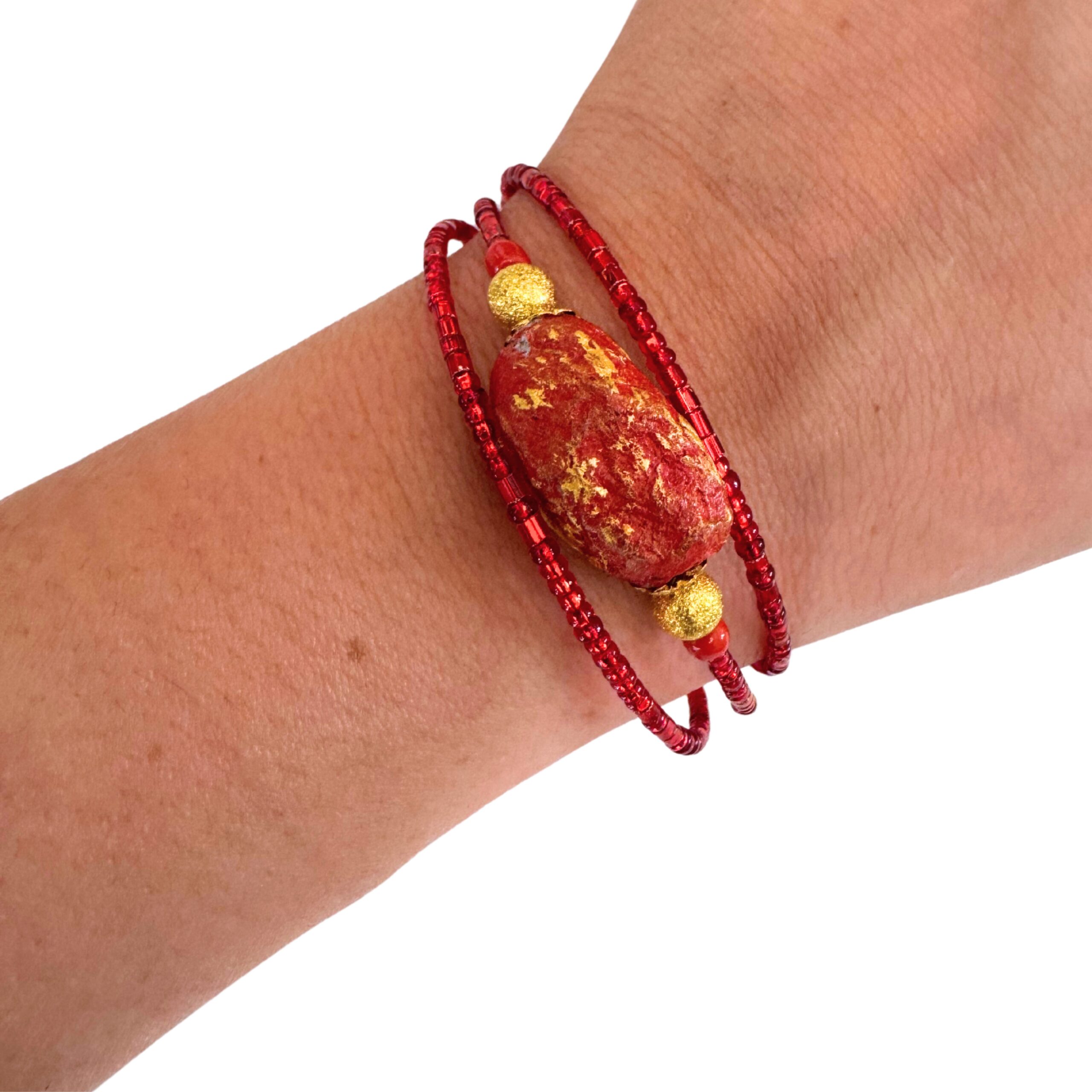 Intenso, elegante e ricco di carattere, questo bracciale artigianale rosso con perla in cartapesta e perline in vetro di Murano è un gioiello unico che celebra l’eccellenza dell’artigianato italiano. Realizzato a mano, è composto da sottili fili di perline in vetro di Murano rosse, luminose e raffinate, che avvolgono il polso con leggerezza.