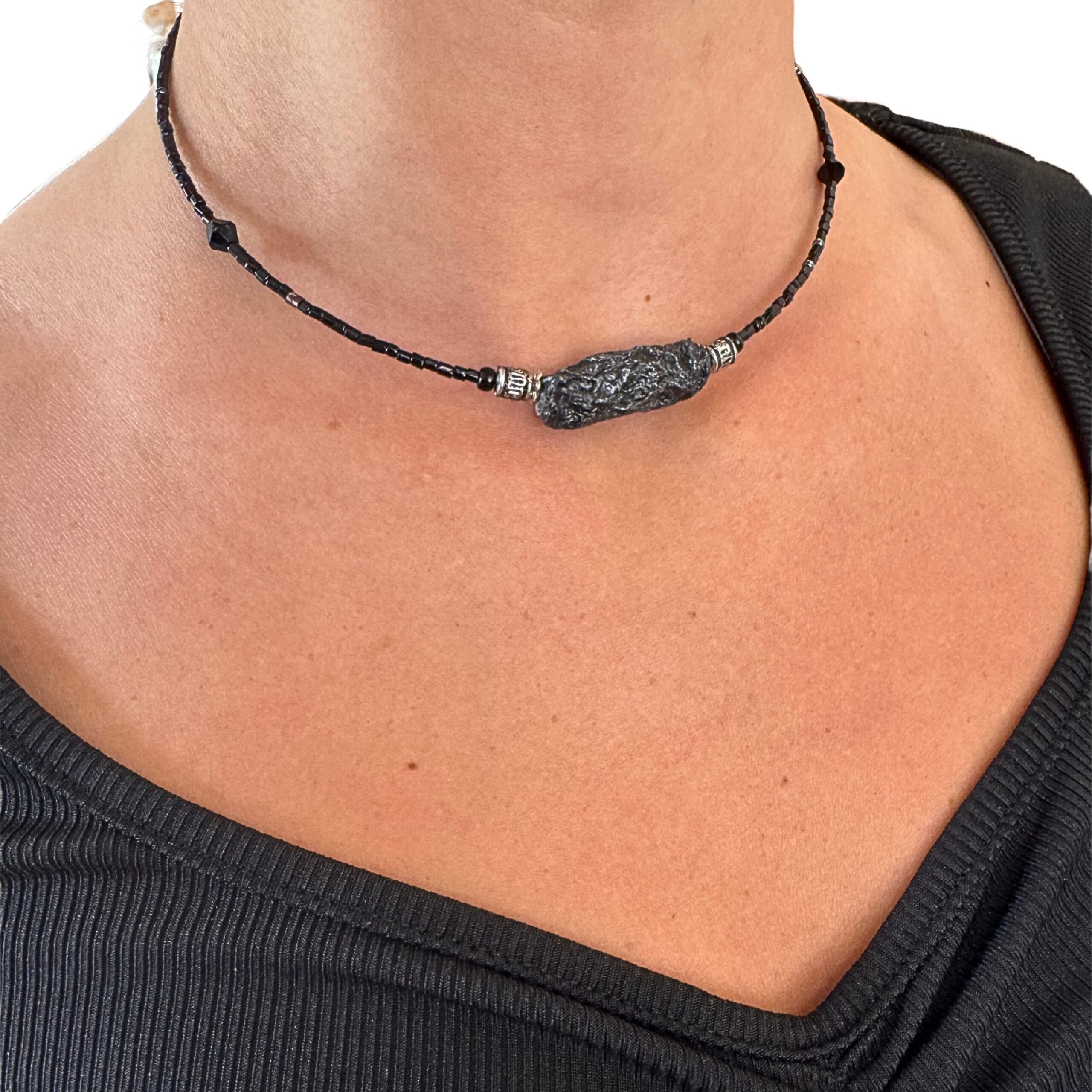 Leggera e confortevole, la collana è ideale sia per l’uso quotidiano sia per completare outfit serali o dallo stile urban-chic. Una creazione pensata per chi cerca gioielli artigianali fatti a mano, sostenibili e realmente unici.