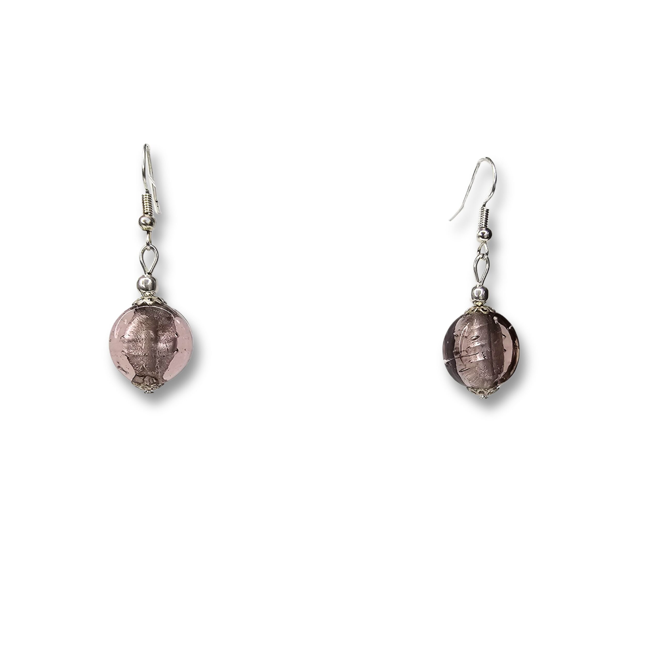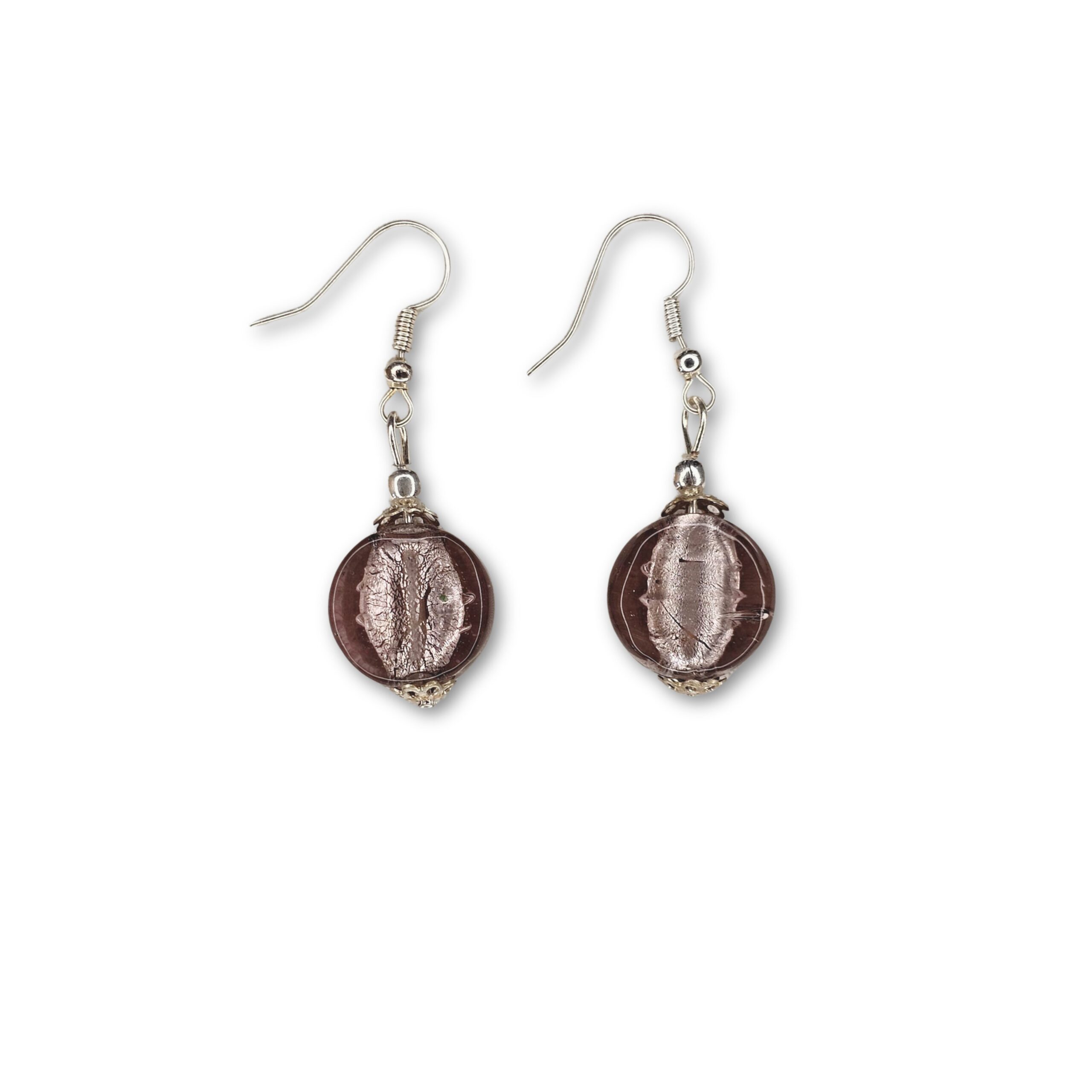 Eleganti e luminosi, questi orecchini artigianali in vetro di Murano con foglia argento sono un gioiello raffinato che esprime tutta la maestria della tradizione veneziana. Realizzati a mano, presentano perle ovali in vetro di Murano arricchite da foglia argento, che crea affascinanti riflessi cangianti e dona profondità al colore.