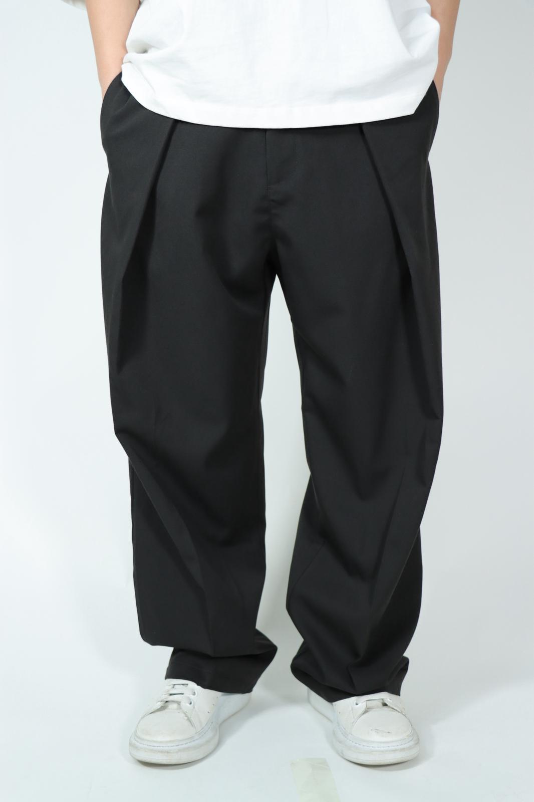 Il modello presenta pinces frontali che donano struttura e una vestibilità ampia ma bilanciata, garantendo comfort e libertà di movimento. La vita regolare con passanti per cintura, le tasche laterali e le tasche posteriori a filetto completano un design pulito e funzionale. Il taglio dritto con fondo ampio segue le tendenze attuali dello streetwear elegante.